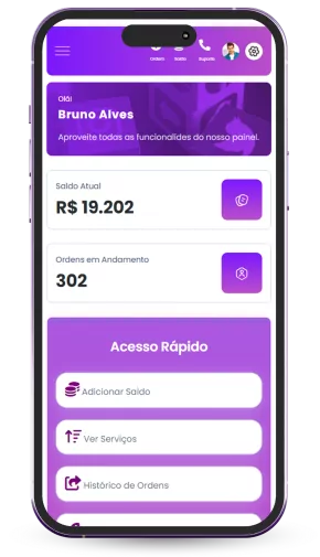 A plataforma é completamente automatizada, possibilitando que você adicione saldo, envie e acompanhe pedidos quando quiser.
